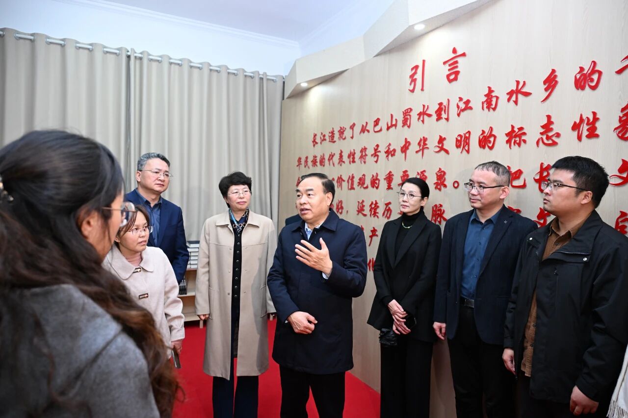 敬敷书院、红楼等地,充分肯定了学校长期以黄梅戏文化、长江文化为研究对象开展学科建设所取得的丰硕成果。他指出,黄梅戏文化与长江文化交相辉映,共同彰显安徽文化魅力。要以更高站位、更宽视野、更大力度来挖掘和传承好这两大文化,强化学科建设,下大力气抓好人才培养、名家培育,推出更多经典的学术和文艺作品,增强文化传播力影响力。在安庆再芬黄梅公馆,唐良智为“省政协徽黄室研学交流基地”揭牌。他强调,要进一步丰富戏曲内容表达,强化戏曲形式创新,更积极拓展戏曲展演形态,把徽剧、黄梅戏文化名片擦得更亮。