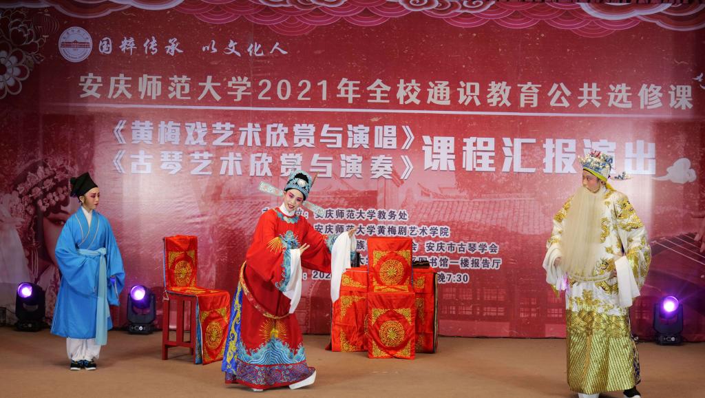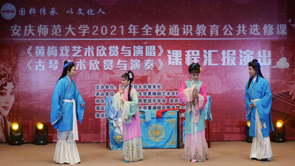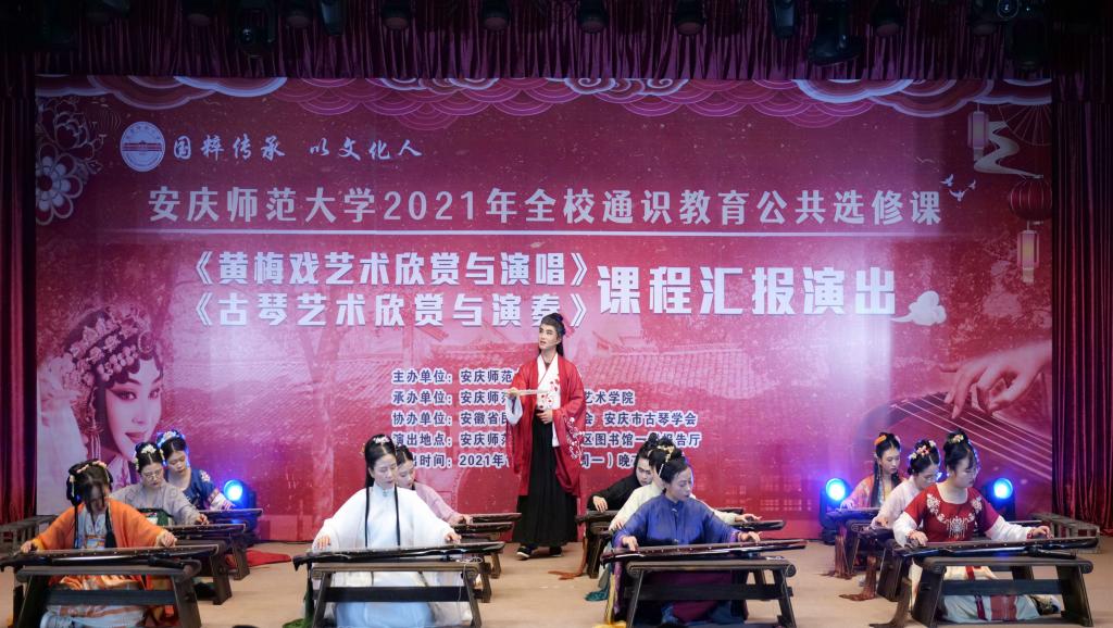 12月27日,全校通识教育公共选修课《黄梅戏艺术欣赏与演唱》《古琴艺术欣赏与演奏》课程举行汇报演出。演出由教务处主办,伊莉论坛