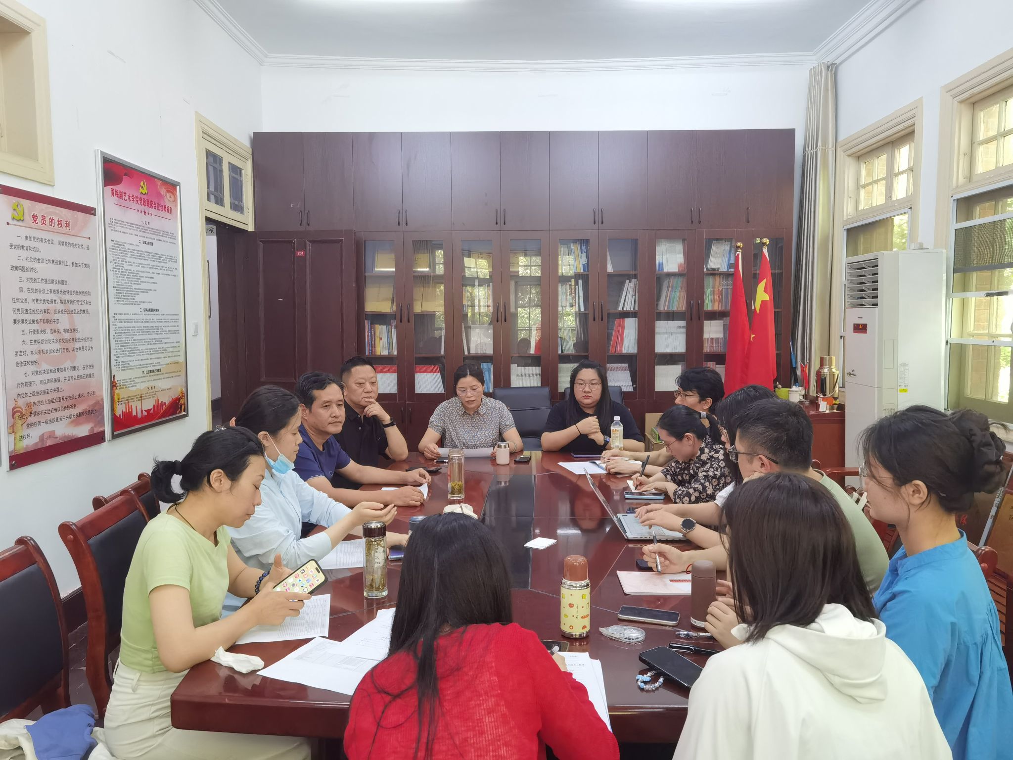 戏曲理论教研室在学院会议室开展本学期期末研讨会,会议由戏曲理论教研室主任江爱华主持。刘国平副院长、储著炎副院长以及教研室全体教师参会。 会议围绕两大议题展开。首先,针对下学期的排课计划及授课教师安排,参会人员进行了深入讨论。结合学院发展规划、专业课程设置以及教师教学专长,大家积极建言献策,力求排课方案科学合理,以保障教学工作高效有序开展。