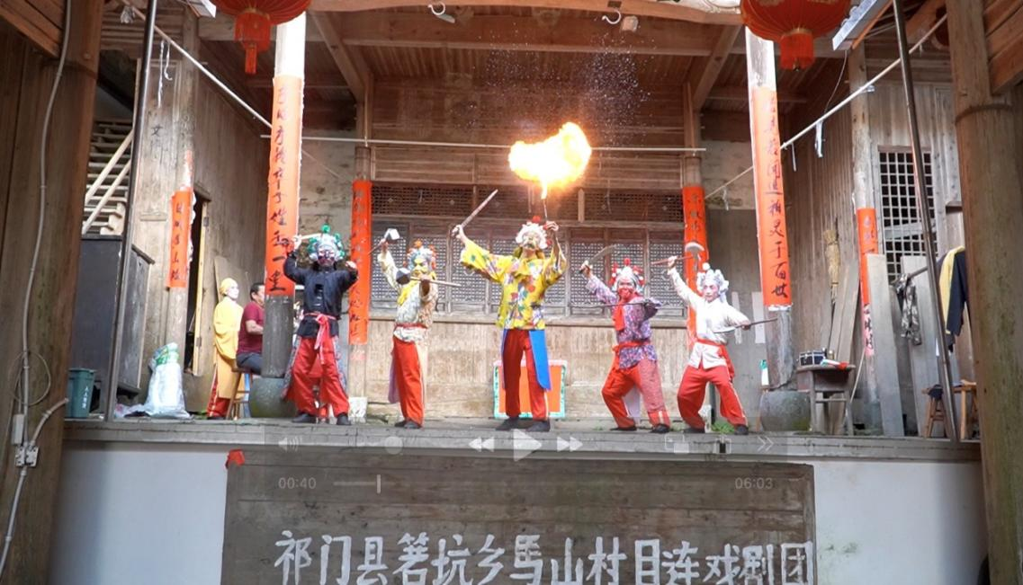 在马山村叶氏宗祠“叙伦堂”的古戏台上,国家级非遗传承人叶汉初带领马山村目连戏剧团的演员们,演出了经典剧目《跳五猖》《游四景》。演出结束后,团队与叶汉初等人进行深入交流。谈及传承,叶汉初等人感慨:“我们不是职业演出剧团,平时干农活,接到活动,我们就提前彩排,一年演几次,一次一百多元。我们并不关心收入的事情,就是有感情,想要把它传下去。”