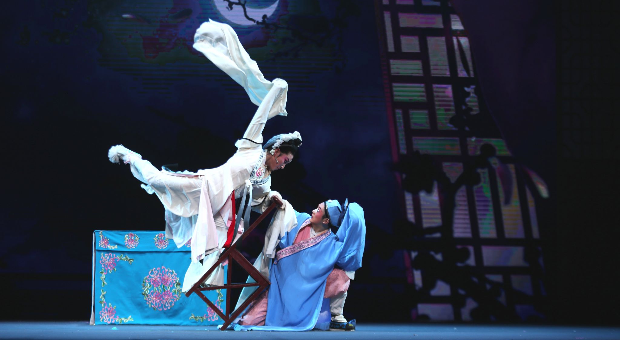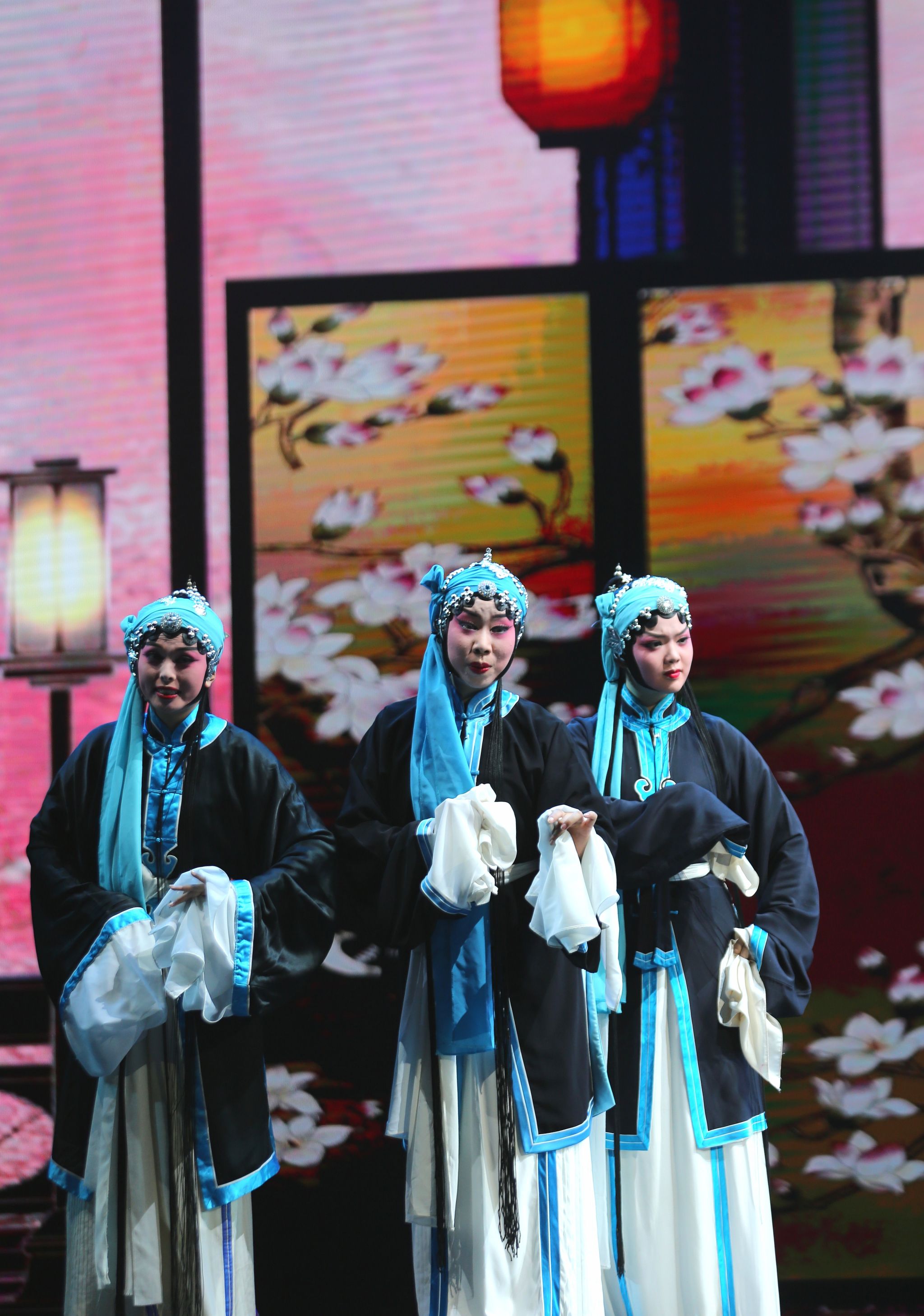 整场演出在灵动脱俗的戏曲舞蹈云裙水袖中拉开帷幕。我校学子依次上演了《别洞观景》《打金砖》《青萍刺目》《渔网会母》《陈三两爬堂》《活捉》《状元府》《投江》《扈家庄》等黄梅戏经典折子戏,此外还有花鼓灯《抢板凳》等极具徽风皖韵的经典作品。