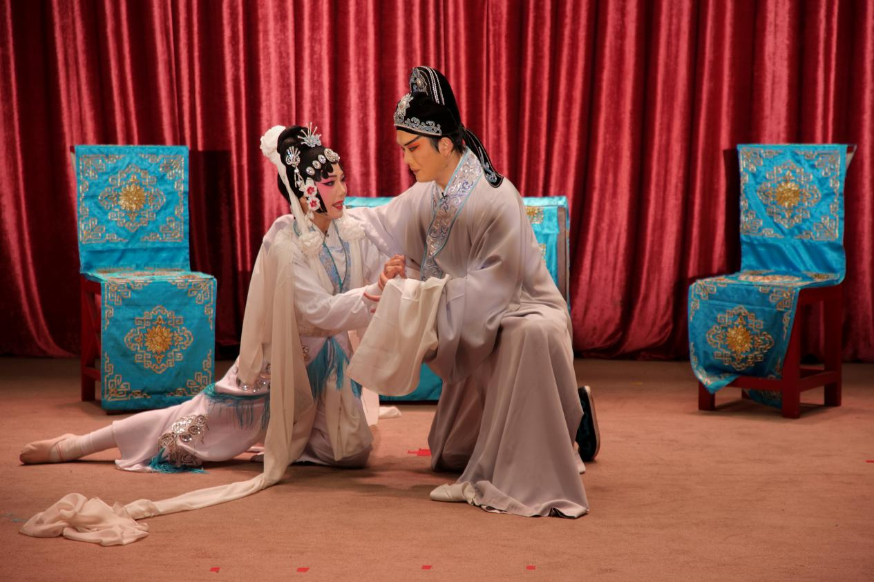 本科教学实践周系列活动圆满落下帷幕。本次教学实践周系列活动内容丰富,形式多样。演出现场座无虚席,观众热情高涨。轻松活泼的《闹花灯》,唱做兼俱的《劈棺惊梦》《昭君出塞》,以及《挡马》《放装》等经典剧目选段,将传统戏曲的"四功五法"发挥得淋漓尽致,充分展示了同学们扎实的戏曲基本功与舞台表演能力。