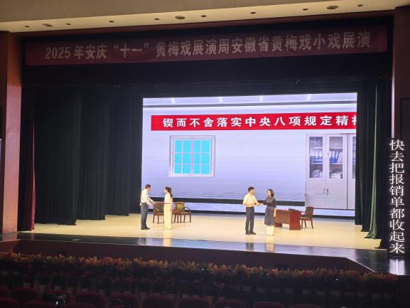 师生组成,作品把中央八项规定精神与黄梅戏艺术巧妙融合,既守传统根,又接时代脉,为黄梅戏创新发展提供了借鉴。“用专业把八项规定演出来,特别有成就感。”参演学生潘钰瑶表示,未来会继续在传承创新中探索,让黄梅戏这张“安徽文化名片”焕发更多时代光彩。
