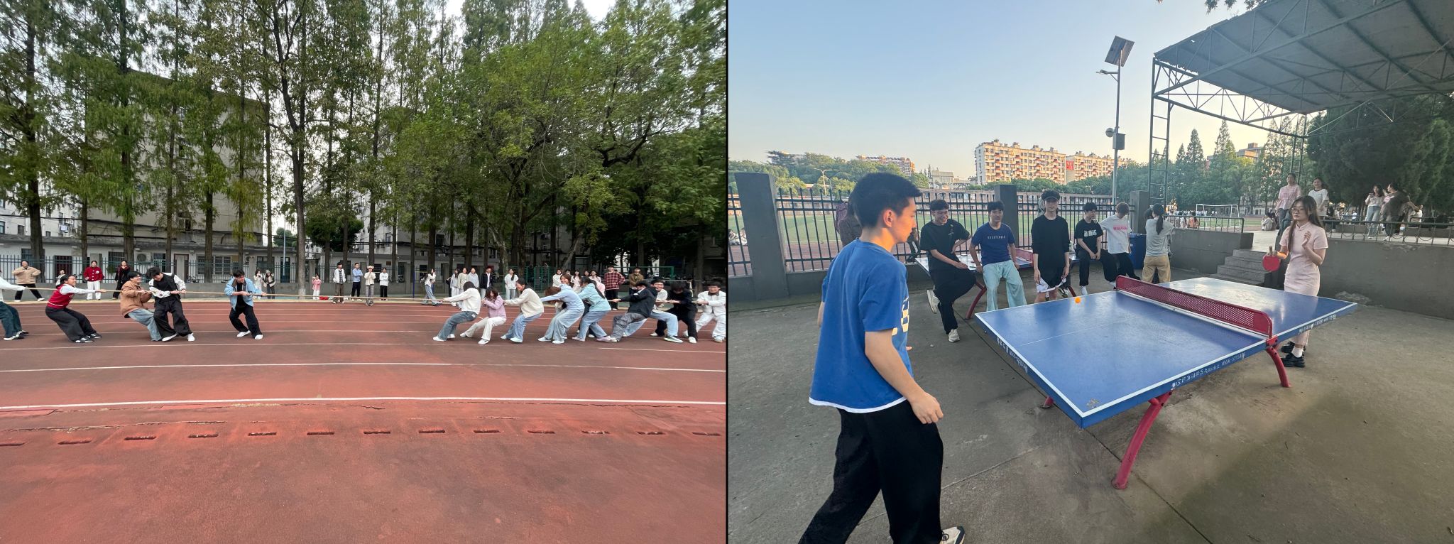 运动会氛围轻松愉快,赛场上拔河对决紧张激烈、呐喊震天;“两人三足” 考验默契,同学们步伐从凌乱到统一,在协作中拉近心距;乒乓球比赛,加油声不断,瞬间消解日常训练的疲惫。平日苦练身段唱腔的学子们,此刻在阳光下尽显别样风采,不分年级专业,全情投入为共同目标拼搏,运动快乐成全场主旋律,也恰与心理节 “关注心灵、快乐成长” 的理念相契合。